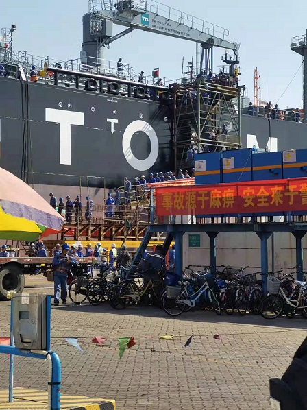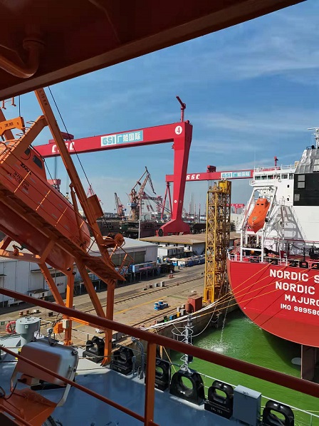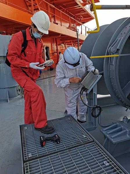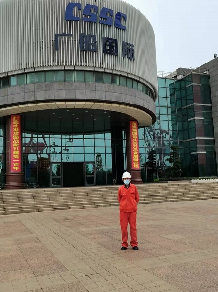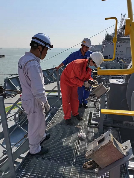 質(zhì)保部張建國(guó)部長(zhǎng),生產(chǎn)部王博副經(jīng)理在廣船國(guó)際公司進(jìn)行售后服務(wù)。