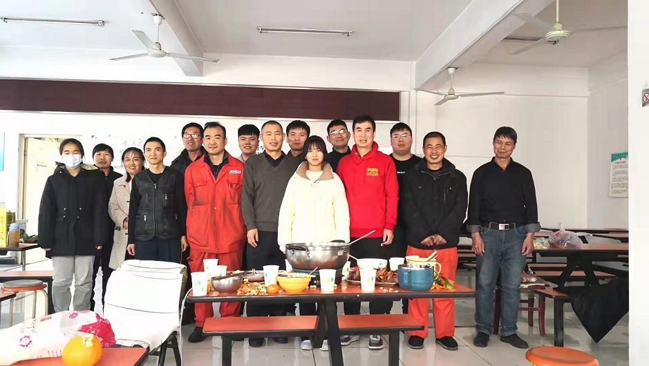 和因疫情原因不能回家過年的外地員工在公司聚餐共同迎接虎年到來
