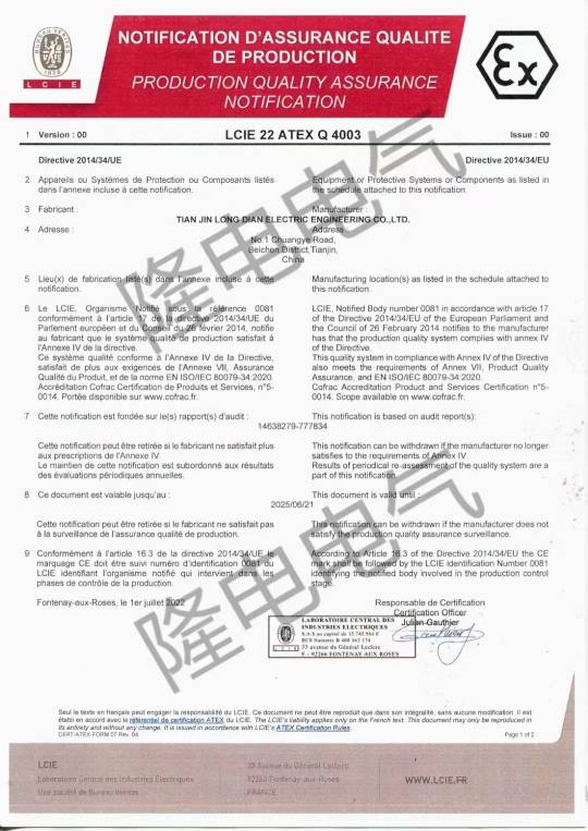 賀公司通過歐盟ATEX認(rèn)證和國(guó)際電工委員會(huì)IEC認(rèn)證工廠QAR、QAN體系復(fù)審。