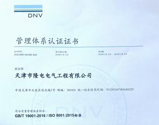 隆電電氣公司全面執(zhí)行ISO9001體系