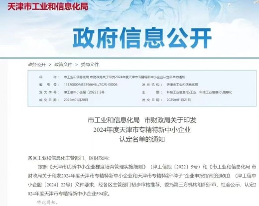 熱烈祝賀“天津市隆電電氣工程有限公司”被天津市工信局+天津市財(cái)政局認(rèn)定為“天津市專精特新中小企業(yè)”