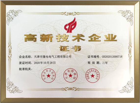熱烈祝賀隆電電氣獲得高新技術(shù)企業(yè)證書