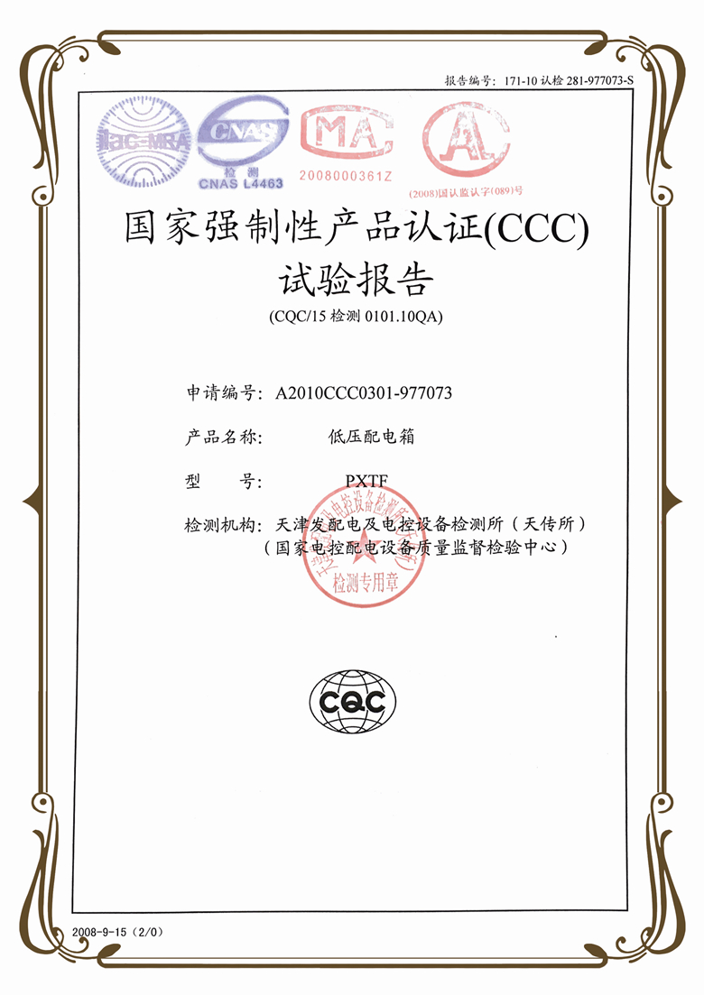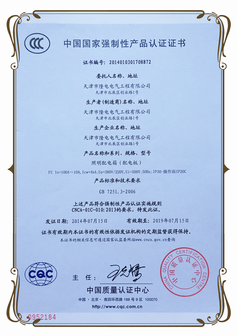 PZ照明配電箱證書(中)