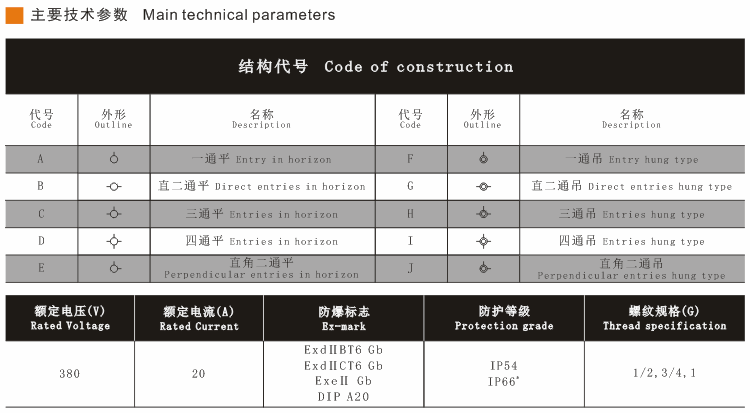 防爆標(biāo)志:ExdⅡB Gb; ExdⅡC Gb;ExeⅡGb;DIP A20