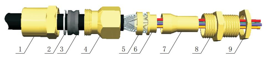 DT系列防爆電纜密封接頭組裝示意圖(Ⅰ型)